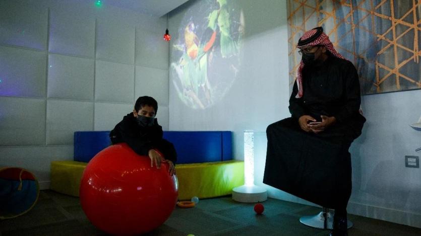 ولضمان استمتاع المشجعين من ذوي التوحد بتجربة هادئة وآمنة ومريحة؛ جرى تجهيز غرف المساعدة الحسية بكافة الأدوات والأجهزة اللازمة، ومن بينها سمّاعات الرأس العازلة للضوضاء، والفرش الناعمة، والإضاءة والموسيقى الهادئة، والرسوم التفاعلية عبر استخدام تقنيات إسقاط الضوء على الجدران والأرضيات، والألعاب الملونة، وتقنيات منع الضوضاء، والكراسي المحشوّة.