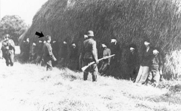 وقد كان احد الجنود يصور المشهد وحفظت هذه الصورة التي التقطها لحظة توجه شولتس نحو المتهمين لكي يقف معهم.