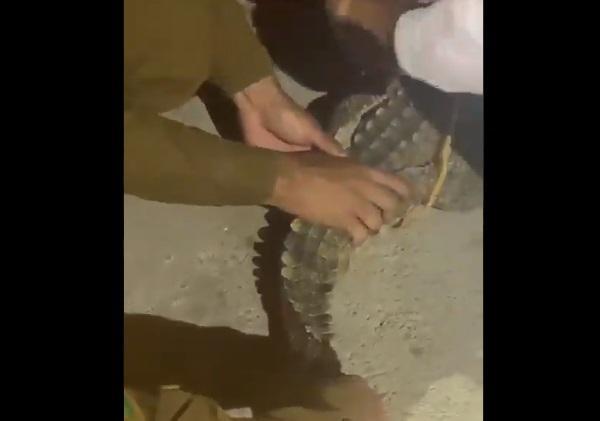 فيديو.. السيطرة على تمساح يتجول في السعودية