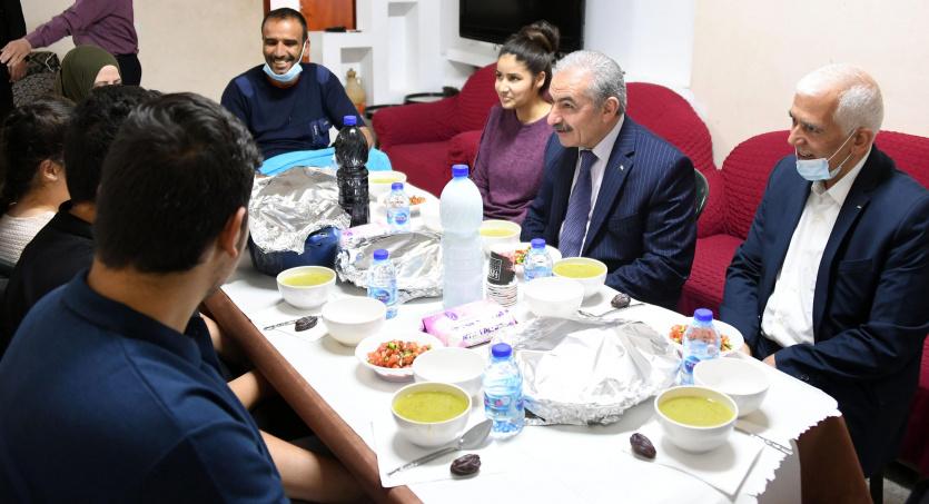 اشتية يشارك مأدبة الإفطار مع عائلة مواطن ويتكفل بمصاريف علاجه