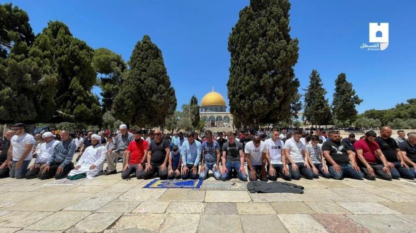 أدى نحو 20 ألف مصل، صلاة اليوم الجمعة، في باحات المسجد الاقصى المبارك، رغم الإجراءات العسكرية الإسرائيلية المشددة.