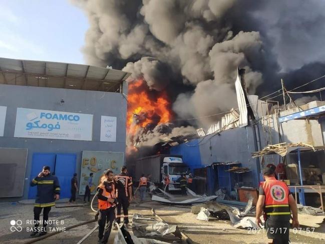الدفاع المدني بغزة: الاحتلال استهدف مصنعاً للإسفنج بعدة قذائف فوسفورية حارقة
