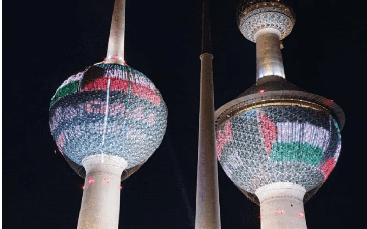 إضاءة أبراج الكويت بعلم فلسطين تضامنا مع شعبنا