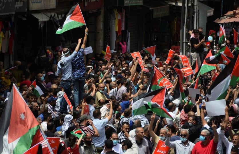 وخرجت مسيرات ونظمت وقفات تضامنية مع الشعب الفلسطيني في إربد والسلط ومعان والكرك ومادبا وغيرها من المناطق.