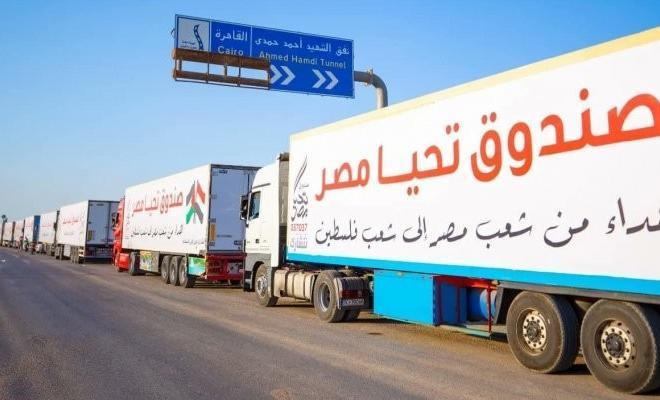 شاهد.. مصر تقدم أضخم قافلة مساعدات إلى قطاع غزة