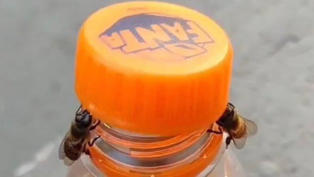 وظهرت النحلتان وهما يرفعان غطاء مشروب "فانتا" الغازي، بشكل متناغم، حتى أسقطاه أرضا، في فيديو وثقته امرأة في ساو باولو البرازيلية.