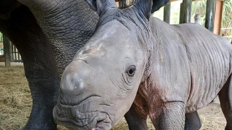 ولادة أنثى لوحيد القرن الأبيض المهدد بخطر الانقراض
