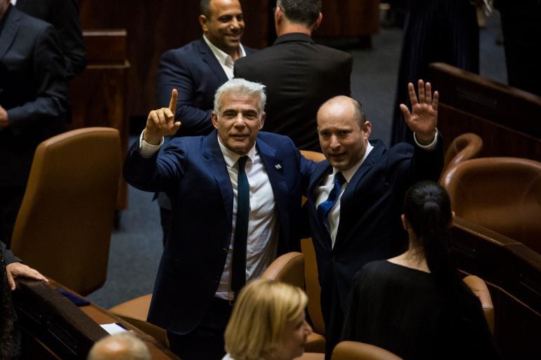 وصادق الكنيست، مساء الأحد، على تنصيب الحكومة الإسرائيلية الجديدة، التي يتناوب على رئاستها كل من رئيس حزب "يمينا" نفتالي بينيت أوّلا، ورئيس حزب "ييش عتيد"، يائير لبيد.