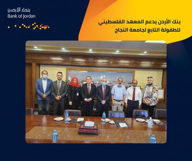 وقام وفد من بنك الأردن ضم المدير الإقليمي لفروع البنك في فلسطين حاتم فقهاء، ومسؤولة العلاقات العامة رجاء الجبارين ومدير فرع رفيديا شامل عبد الهادي، بزيارة جامعة النجاح، حيث كان في استقبالهم رئيس الجامعة الأستاذ الدكتور ماهر النتشة، بحضور مدير المعهد الفلسطيني للطفولة الدكتور علي الشعار، والمدير المالي رشيد الكخن، ومدير العلاقات العامة خالد الحسيني، ومسؤولة العلاقات العامة في المعهد دينا القدومي.