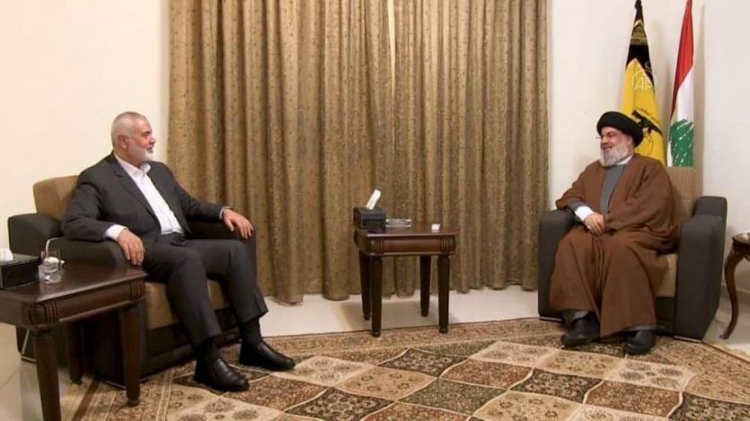 وفد من قيادة حماس برئاسة هنية يلتقي حسن نصر الله