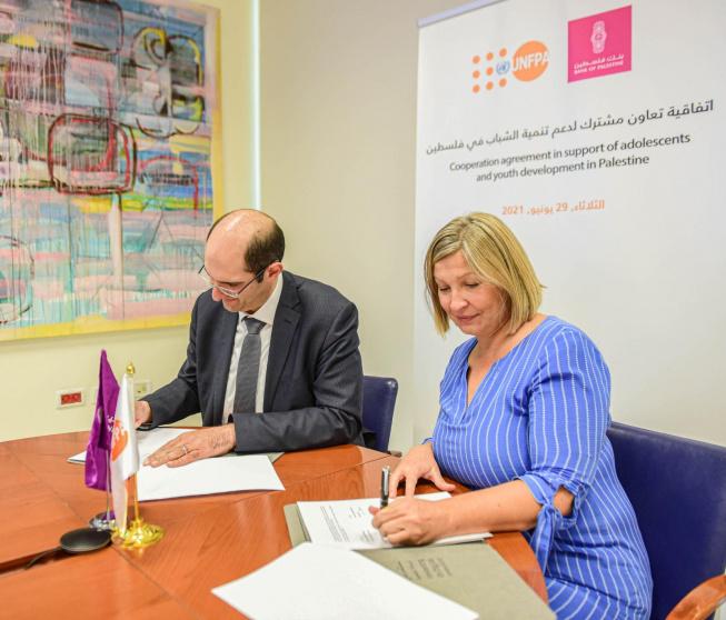 ووقع كل من السيد لؤي شبانة المدير الإقليمي للدول العربية في صندوق الأمم المتحدة للسكان، والسيد محمود الشوا المدير العام لبنك فلسطين، إطار التعاون الذي يأتي استجابةً للآثار السلبية للحرب على نمو الشباب واليافعين الذين تتراوح أعمارهم بين 13 و 17 عاماً، وذلك من النواحي التعليمية والاجتماعية والعاطفية، مما تسبب في مشاكل صحية وإصابة العديد منهم بإعاقات، إضافة إلى تمزق الأسر وتشتت الشبكات الاجتماعية، وتعريض الشباب لمخاطر جديدة وتقييد وصولهم إلى السلع والخدمات الحيوية.