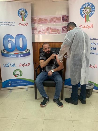 نظمت شركة الجنيدي لتصنيع الألبان والمواد الغذائية وبالشراكة مع وزارة الصحة – مديرية صحة الخليل، يوماً صحياً لتطعيم العاملين في الشركة لقاح ضد فايروس كورونا (كوفيد -19) في مقر الشركة الرئيس في الخليل.