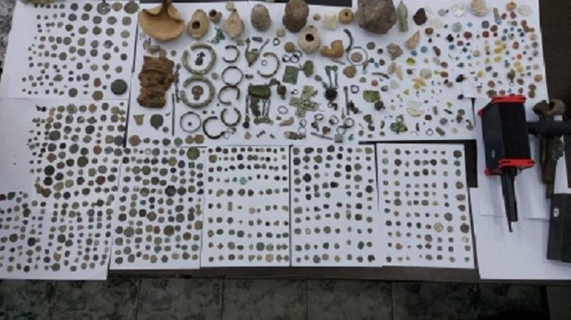 وأضافت: "بعد تفتيش المنزل تم ضبط 908 قطع مختلفة الأشكال والأحجام يشتبه أنها أثرية وجهازي كشف عن المعادن، وبفحصها لدى مكتب وزارة السياحة والآثار تبين أنها أثرية وتعود لحقب زمنية متنوعة".