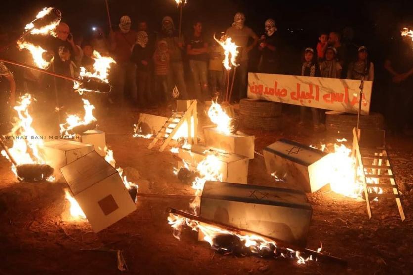 وكان عشرات الأطفال اعتلوا بزيهم الموحد، جبل صبيح في بيتا وهم يحملون المشاعل.