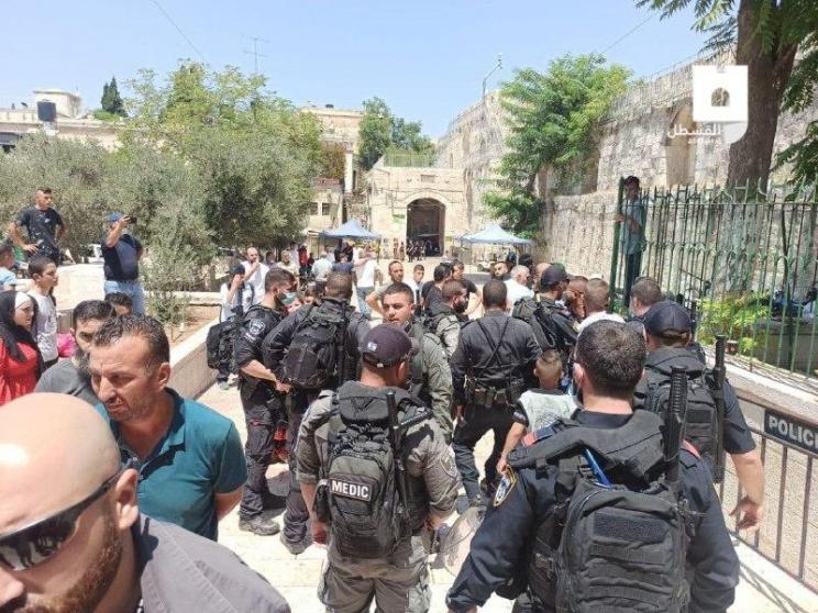 اعتدت قوات الاحتلال الإسرائيلي ظهر اليوم السبت، على الأهالي والمصلين الوافدين لأداء صلاة الظهر في المسجد الأقصى المبارك عند باب الأسباط بمدينة القدس المحتلة.