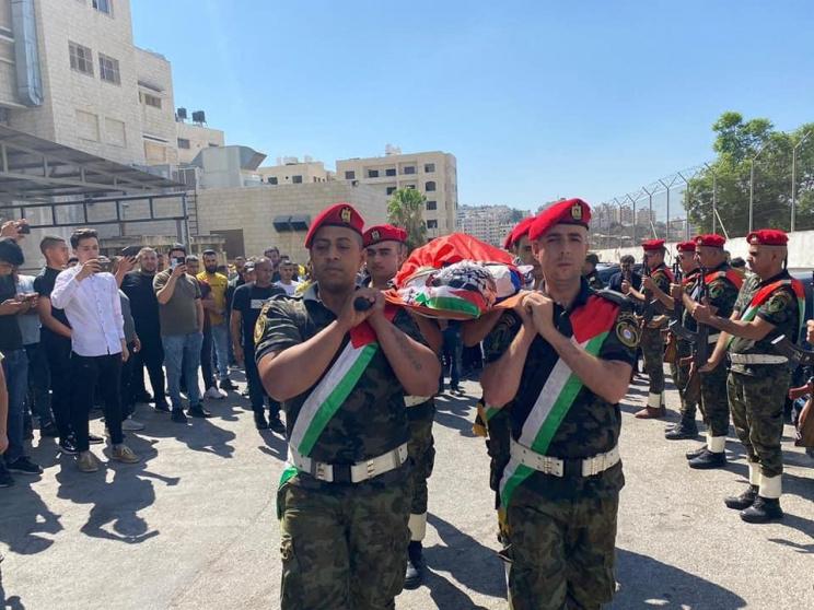 وانطلقت جنازة الشهيد الذي لف بالعلم الفلسطيني من أمام مستشفى رفيديا، بمشاركة ممثلي فصائل العمل الوطني، ومؤسسات وفعاليات المحافظة المختلفة.