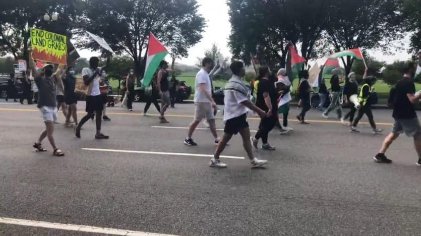 واكد المتظاهرون في بيان لهم رفض الإجراءات التعسفية الإسرائيلية بحق الفلسطينيين، داعيين بايدن إلى الضغط على الحكومة الاسرائيلية لوقف انتهاكاتها.
