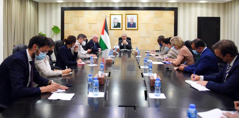 واستعرض رئيس الوزراء الانتهاكات الإسرائيلية بحق أبناء شعبنا، لا سيما عمليات القتل والاعتقال، والاقتحامات اليومية للمناطق الفلسطينية، بالإضافة إلى هدم المنازل، والاستيلاء على الأراضي والتوسع الاستيطاني، مجددا مطالبته الاتحاد الأوروبي بالضغط على إسرائيل لوقف هذه الإجراءات.