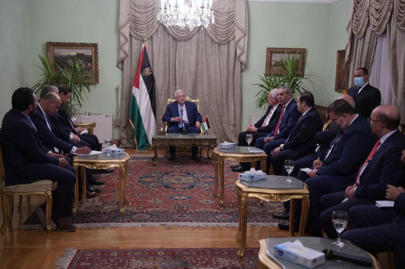 ووضع الرئيس ضيوفه، في صورة التحركات الخاصة بالأوضاع الفلسطينية واللقاءات والاتصالات التي أجراها مع عدد من القادة العرب.