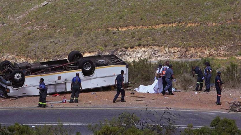 لقي 12 شخصا مصرعهم وأصيب 34 آخرون في حادث انقلاب حافلة رحلات سياحية على طريق القاهرة – السويس شمالي مصر.