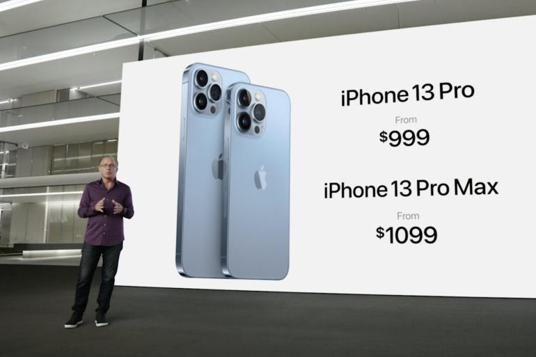 ويأتي هاتف آيفون 13 برو بسعر 999 دولار أميركي، أما هاتف آيفون 13 برو ماكس، فيأتي بسعر 1099 دولار أميركي.
