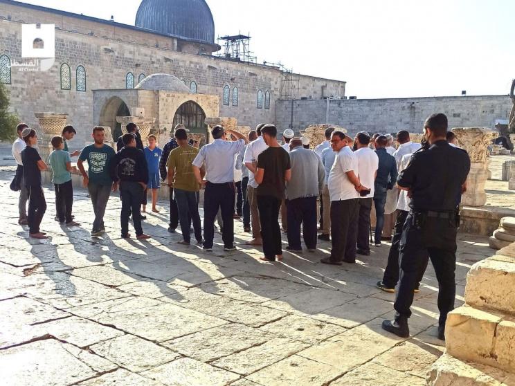 وأوضحت دائرة الأوقاف الإسلامية في القدس، أن 430 مستوطنا اقتحموا الأقصى، على شكل مجموعات متتالية، من جهة باب المغاربة، وأدوا طقوسا تلمودية علنية في باحاته، وقدموا شروحات عن "الهيكل" المزعوم.