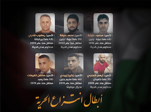 وكان الأسرى الستة (محمود العارضة، ومحمد العارضة، ويعقوب قادري، وأيهم كممجي، ومناضل انفعيات وزكريا زبيدي) عرضوا على المحكمة على "ذمة قضية الهروب" وتم توجيه عدة اتهامات لهم، منها "التخطيط لعمليات"، حيث مدد اعتقالهم على ذمة القضية أكثر من مرة.