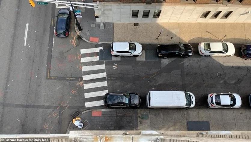 وأظهرت لقطات فيديو وصور من المشهد، الرجل الذي قفز من نافذة مفتوحة في الطابق التاسع من المبنى الشاهق في 26 جورنال سكوير، وهو يتلوى من الألم ويمسك ذراعه المكسورة.