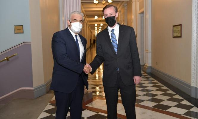 وبحسب بيان الخارجية الإسرائيلية، أطلع لبيد مستشار الأمن القومي الأميركي، "القلق الإسرائيلي من السباق الإيراني تجاه تحصيل قدرات نووية، ومن حقيقة أن إيران أصبحت دولة عتبة نووية".