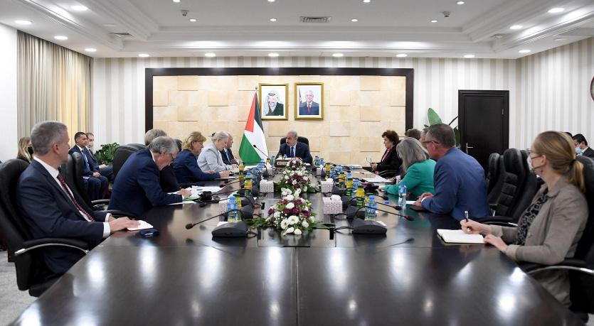 بحث رئيس الوزراء محمد اشتية مع وفد ضم عشرة أعضاء من الكونغرس الأميركي على رأسه السيناتور كريس كونز، آفاق العملية السياسية والعلاقات الثنائية مع الولايات المتحدة.