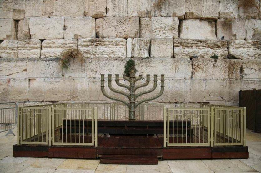 بالصور: مستوطنون ينصبون شمعدانا في ساحة حائط البراق