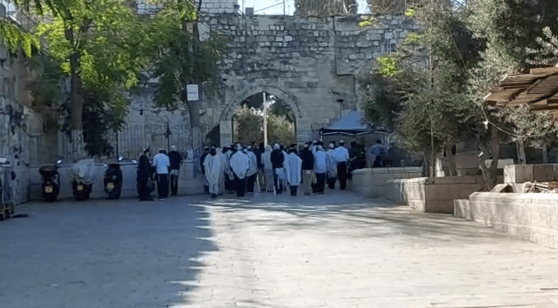 وأفاد شهود عيان، بأن نحو 25 مستوطنا تجمعوا في ساحة الغزالي، وقاموا باستفزاز الأهالي، وأدوا طقوسا تلمودية أمام باب الأسباط، فيما رد المصلون عليهم بالتكبيرات من داخل الأقصى.