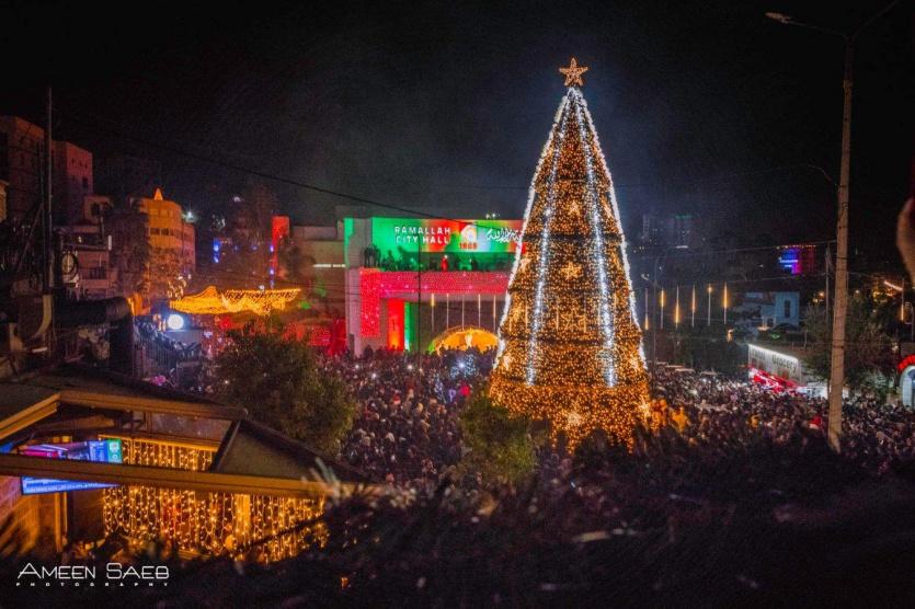 بالفيديو والصور: إضاءة شجرة الميلاد في رام الله