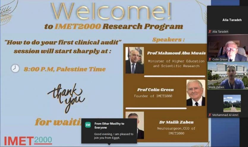 أعلن وزير التعليم العالي والبحث العلمي محمود أبو مويس، يوم الاثنين، انطلاق نادي البحث العلمي الصحي الفلسطيني، بدعم من المؤسسة الدولية للتعليم الطبي.(IMET2000) ويضم النادي ما يزيد عن 500 عضو باحث ومهتم، ويرعى العديد من المشاريع البحثية، ويركز على البحث الطبي والصحي ويوفر الدعم المطلوب لرعاية الباحثين الفلسطينيين الناشئين.