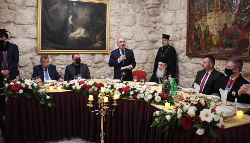 جاء ذلك خلال كلمته في عشاء أعياد الميلاد المجيدة حسب التقويم الشرقي، مساء اليوم الخميس، في بيت لحم، بحضور بطريرك المدينة المقدسة وسائر أعمال فلسطين والأردن ثيوفيلوس الثالث، وممثل الملك عبد الله الثاني وزير الداخلية الأردني مازن الفراية، ورئيس اللجنة الرئاسية العليا لمتابعة شؤون الكنائس الوزير رمزي خوري، وعدد من الشخصيات الرسمية والدينية وأعضاء السلك الدبلوماسي.
