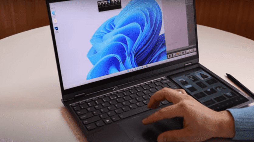 وأكثر ما يميز حاسب ThinkBook Plus Gen 3 هو حصوله على شاشة إضافية مثبتة بجانب لوحة المفاتيح، يمكن للمستخدم الكتابة والرسم عليها بقلم ذكي لتعديل الصور أو إضافة توقيعه على الوثائق الإلكترونية.