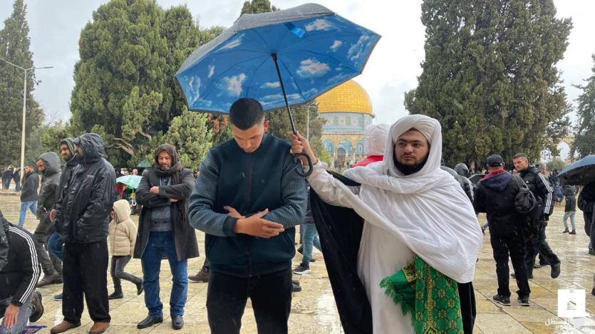 وكان الآلاف من المواطنين أدوا صلاة الفجر في رحاب المسجد الأقصى، تلبية لنداء أطلقته مؤسسات مقدسية، رغم الأجواء الماطرة، ردا على الانتهاكات الاحتلالية والاقتحامات التي ينفذها مستوطنون لباحات قبلة المسلمين الأولى.