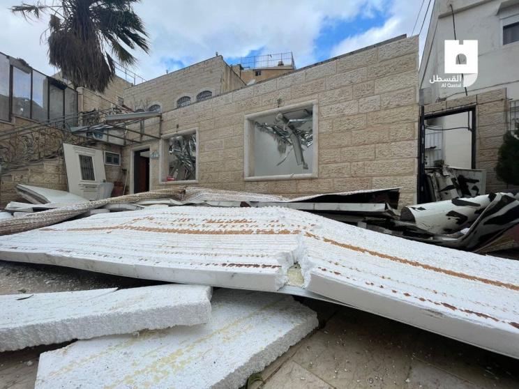 وأضافت: أن مساحة المنزل تبلغ سبعين مترًا مربعًا ومبني منذ عام 2016، وتعيش فيه عائلة الجعبري المكونة من ثمانية افراد.