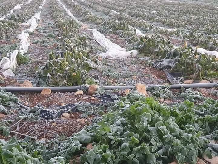 طيلة أمس الثلاثاء، كان المزارع رافع دراغمة من قرية بردلة بالأغوار الشمالية يجوب حقوله الزراعية لحصر خسائره جراء موجة الصقيع الشديدة التي أثرت على كافة المحافظات خلال اليومين الماضيين.