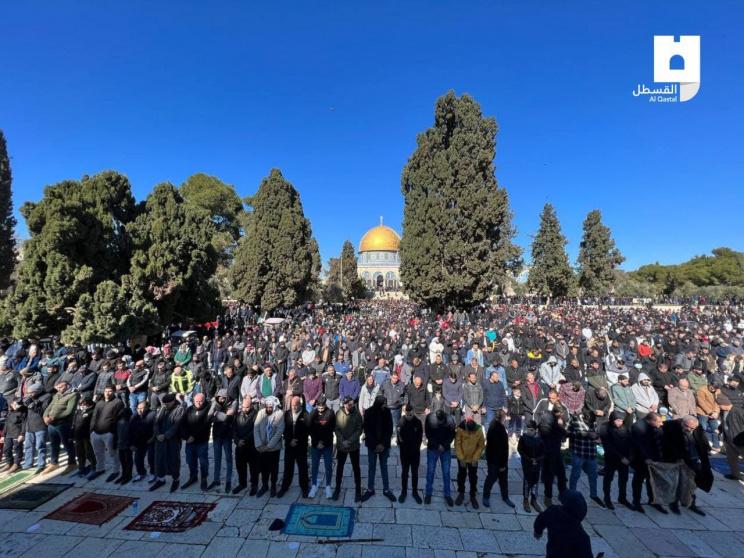 أدى عشرات الآلاف صلاة الجمعة في المسجد الأقصى المبارك، رغم الإجراءات العسكرية المشددة التي فرضتها سلطات الاحتلال الإسرائيلي على أبواب ومداخل البلدة القديمة في القدس المحتلة.