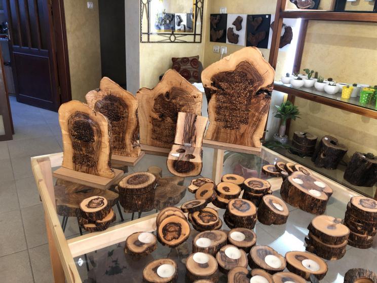 من شجرة الزيتون يخلق الابداع والإلهام، وبأفكار جديدة يتميز بابتكارها أبناء الشعب الفلسطيني لإحياء تراثهم العريق، والذي يجب أن يبقى حاضراً في كل زمان ومكان، وانطلاقا من هذه الفكرة؛ افتتح فيصل النعنيش مشروعه الذي يتميز بصنع التحف والإكسسوارات المنزلية.