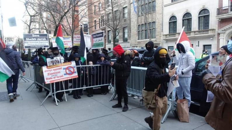 وتجمع المتظاهرون بشكل سلمي خارج السفارة الإسرائيلية للتنديد بالطرد القسري للفلسطينيين من حي الشيخ جراح في القدس، والنقب.