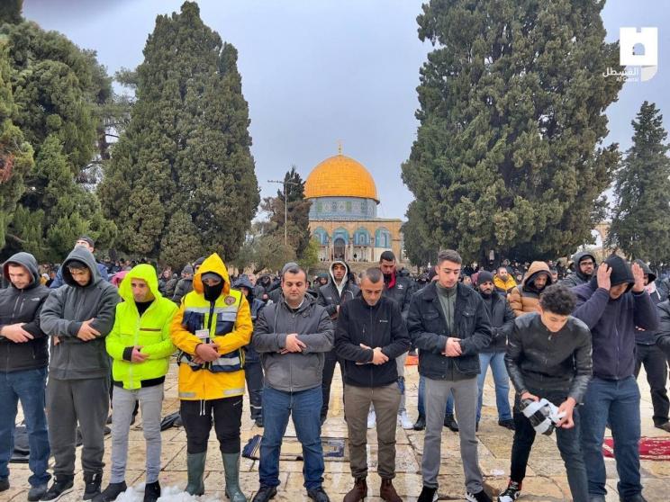 وشهد المسجد الأقصى احتشاد آلاف المواطنين من القدس والضفة الغربية وداخل أراضي عام 1948، لأداء الصلاة رغم الأجواء الباردة والماطرة، لإيصال رسالة للاحتلال برفض مخططاته التهويدية التي ينفذها في الأقصى، وللتأكيد على إسلاميته وضرورة شد الرحال إليه.