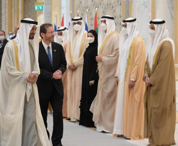 وكان في استقبال هرتسوغ في أبوظبي، وزير الخارجية الإماراتي عبد الله بن زايد.