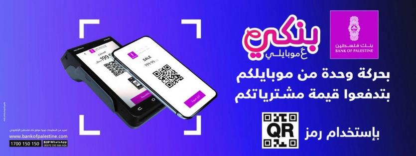 بنك فلسطين يطلق خدمة الدفع لتاجر باستخدام رمز QR code عبر تطبيق بنكي