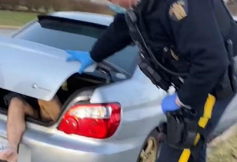 وفي وقت لاحق، حضر رجال الشرطة إلى المكان، عندما كانت ساقا الرجل تتدليان من صندوق السيارة.