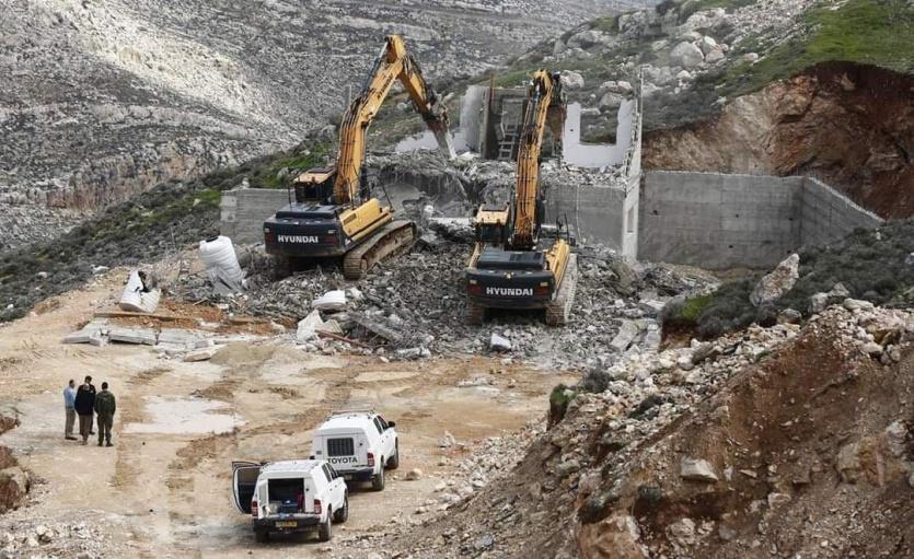 بالصور: الاحتلال يهدم منزلا قيد الانشاء في "سطح مرحبا" بالبيرة