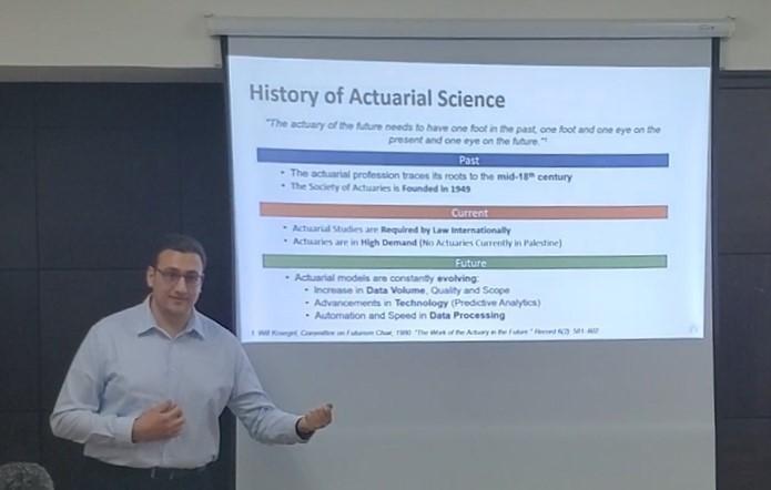 أكد يوسف على الحاجة الماسة للخبراء الاكتواريين في فلسطين والسوق الدولي أيضا، حيث أن لها مستقبل متطور ومشرق مع آفاق وتوقعات وظيفية متزايدة باستمرار وكانت نصيحته للحضور: "السماء هي الحدود، هناك أوقات تصبح فيها الأمور صعبة والخطط لا تسير كما هو متوقع، ولكن كل شيء ممكن مع العمل الجاد والتفاني والتركيز على الهدف"