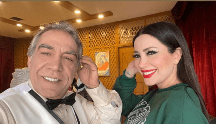 وبدت علامات الانسجام والسعادة واضحة على وجه رضا ونسرين اللذان اتخذا ذات الوقفة في الصورة.