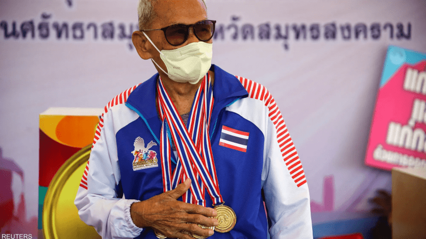 وفي مطلع الأسبوع خلال الدورة السادسة والعشرين للبطولة، التي أقيمت في مقاطعة ساموت سونغخرام بجنوب غرب البلاد، فاز بجميع الميداليات الذهبية في فئة 100-105 أعوام، إذ تجاوز جميع المنافسين في تلك الفئة العمرية.